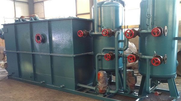 深度處理階段調(diào)節(jié)池的水經(jīng)泵提升至氣浮機,先期去除水中懸浮物(ss),去除率達90%以上,出水進入JHYD設(shè)備,JHYD設(shè)備由(水解酸化池、二級接觸氧化池、沉淀池、消毒池組成),污水在水解酸化池進行酸化處理,通過厭氧菌將大分子有機物轉(zhuǎn)化成低分子有機物;經(jīng)水解酸化池流入接觸氧化池進行生化反應后再進入沉淀池,出水經(jīng)過濾消毒達標排放。